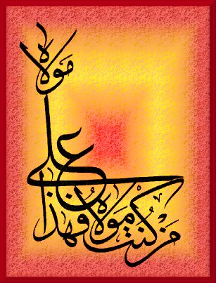 Man Kuntu Mowlahu fa haza Aliyun Mowlahu which was declared by the Prophet at Ghadir e Khumm and is translated - He of whomever I am the Master-Lord Mowla, Ali is his Master-Lord Mowla Video and Audio Files of this declaration:
